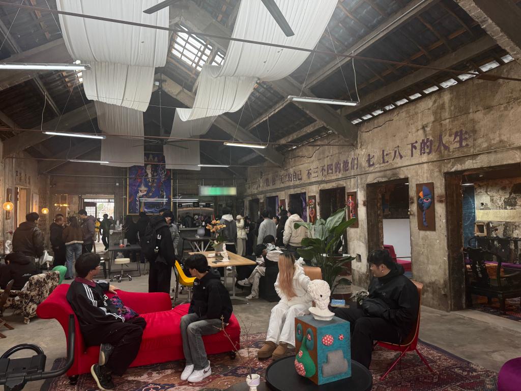 午后,师生前往青云汇科创中心和星际道场参观学习。在星际道场展览区,集中展示了一百四十余件艺术作品,涵盖布艺拼接画和装置艺术,同时配套设有手工艺品展示区、咖啡吧台及多个创作工作室,整体风格保持统一。