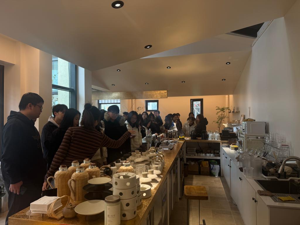 活动期间,师生先后走访了灵峰街道创业金奖项目山屿旷野咖啡馆和创业金奖项目**“一块土也”新式茶饮空间**。在山屿旷野咖啡馆,项目团队介绍了场地规划、空间设计及通过场景营造提升乡村消费吸引力的相关经验;在“一块土也”项目点,负责人赵慧玲分享了项目在乡村茶饮、空间设计与社群运营相结合方面的实践探索。