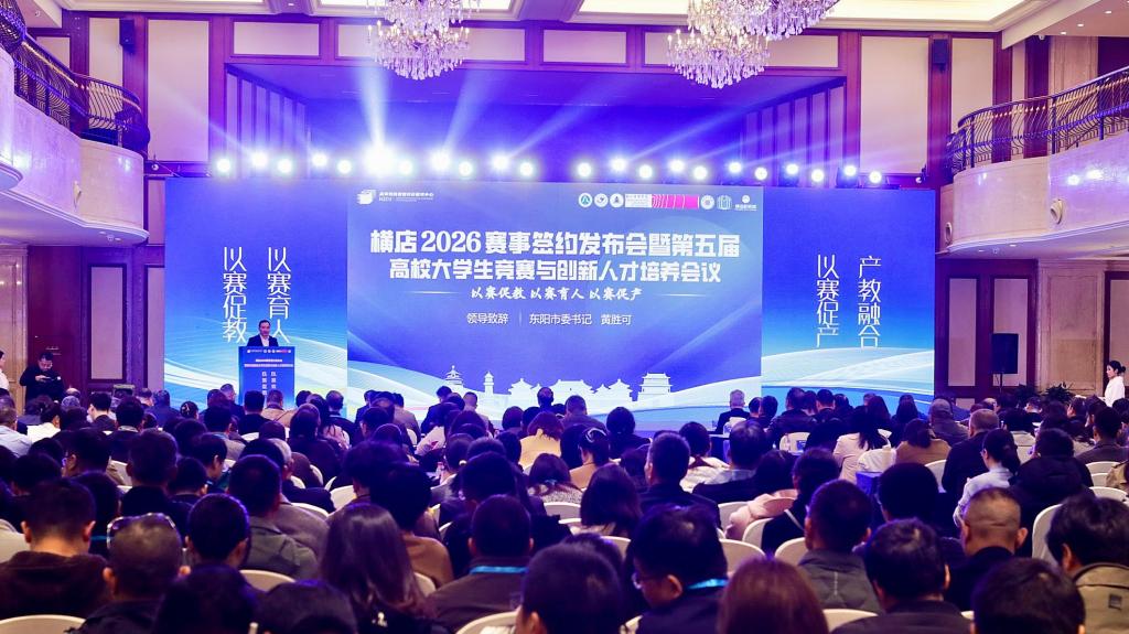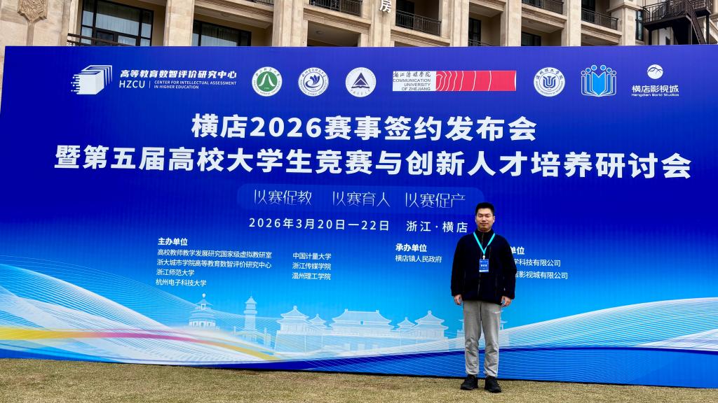 3月21日,2026赛事项目集中签约暨第五届高校大学生竞赛与创新人才培养研讨会在浙江东阳顺利召开。本次会议由浙大城市学院高等教育数智评价研究中心联合浙江师范大学、杭州电子科技大学等多所高校共同主办,吸引了来自全国各地的600余位高校领导、专家学者及行业代表参会。会议聚焦“以赛促教、以赛育人、以赛促产”主题,旨在通过政校行企多方联动,推动大学生竞赛的标准化建设与创新人才培养的高质量发展。我院训练孵化中心方凌飞老师代表学院参加了此次活动。
