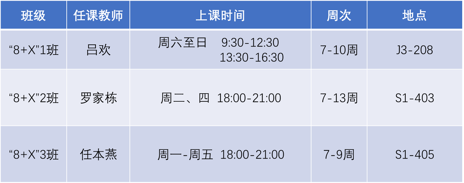 本期训练营计划从第7周开始,开设三个教学班,每班限额45人,由全球模拟公司联合体中国中心(杭州)认定的创业实训师授课。具体课表如下,意向学生可根据自己时间选择合适班级。