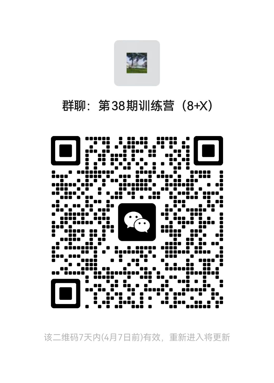 请报名成功同学在4月2日18:00前加入第38期训练营(“8+X”)微信群。